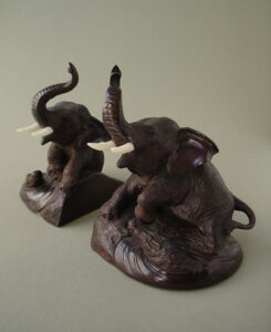 Japanese Bronze Elephant Bookends – Omori Matsumoto